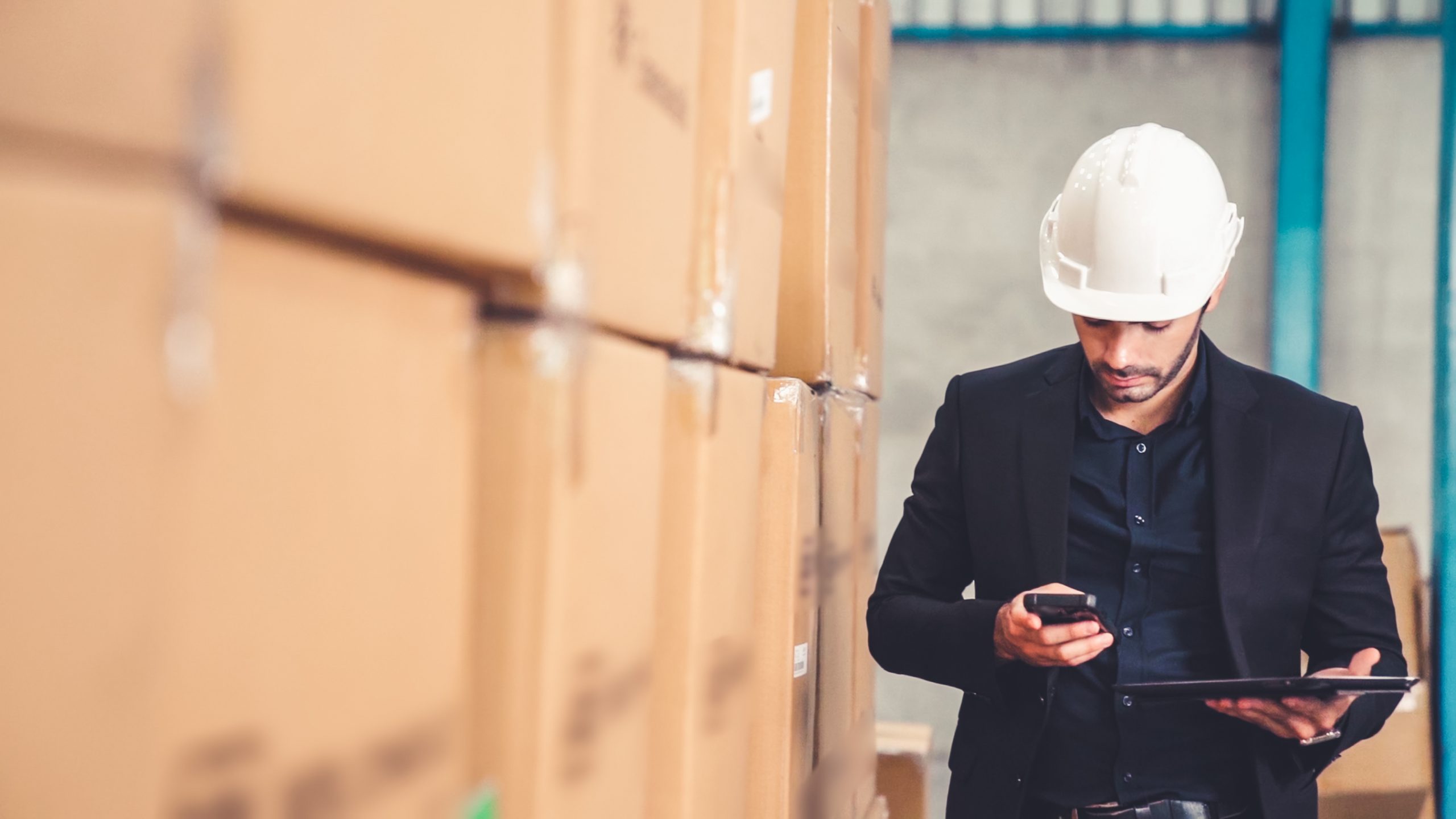 Factory Manager Using Tablet Computer In Warehouse Or Factory .